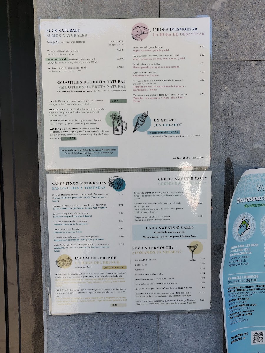 The menu at Lola Coffee&Brunch in Barruera offers a relaxed selection of simple yet thoughtfully prepared dishes and drinks, perfect for casual mornings or laid-back afternoons. It features comforting coffee options alongside fresh, wholesome bites that suit a variety of tastes, including vegan and vegetarian choices.